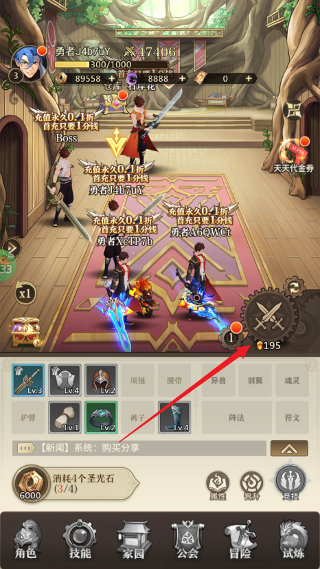 1、玩家在进入游戏后,点击右侧的【战斗】按钮即可让角色自动发起攻击。