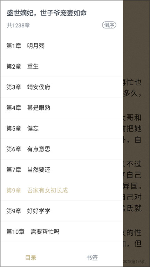 3、同样,通过调用菜单并单击目录,您可以选择切换到要阅读的章节。
