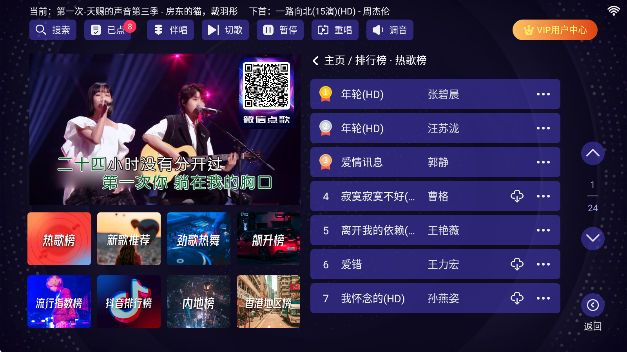 2、我们可以点击排行榜,获取到最近大家都在点歌的内容。