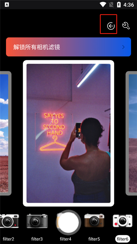 2、软件为用户提供了海量的胶卷滤镜,只需选择自己喜欢的滤镜,点击中间的拍照键即可。