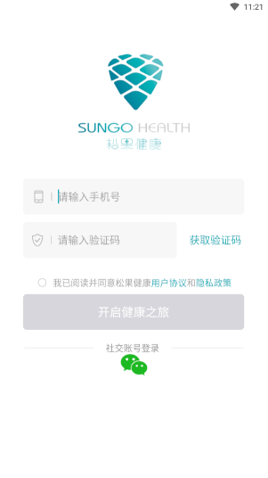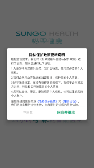1、下载并安装松果健康应用程序,阅读协议并选择是否同意。