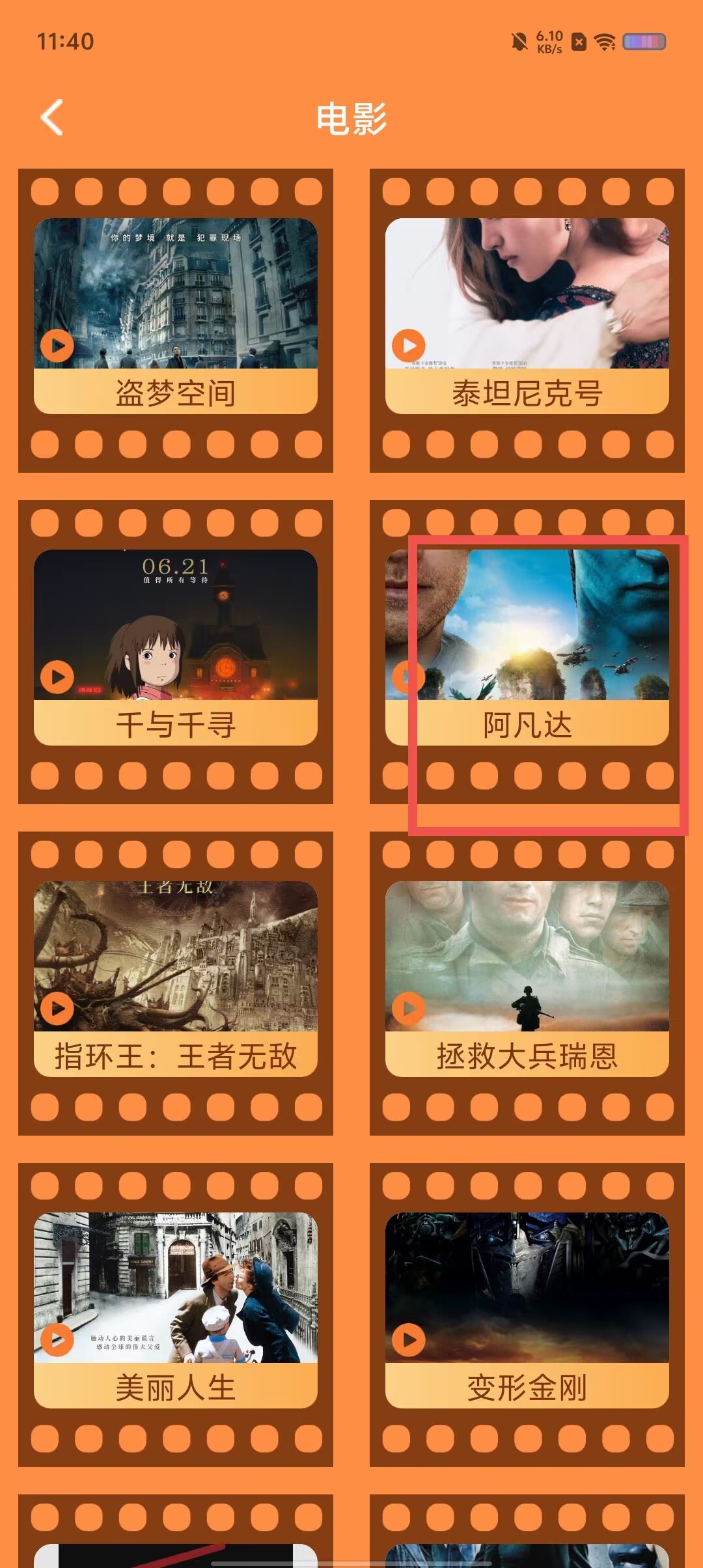 2、根据喜好,选择你最喜欢的电影和电视部分。