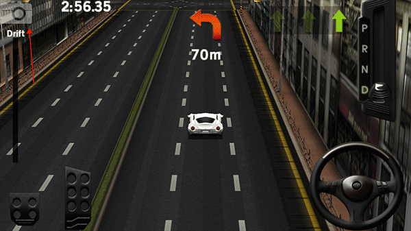 没有玩过重力感应驾驶的小伙伴可能对于这个就比较纠结啦,其实顾名思义,想要向那里转弯就向哪里倾斜移动设备,转弯的幅度与倾斜的角度有关。小编不得不得提醒一句,重力感应下的转弯,操作如果不是特别犀利的小伙伴,提前刹车降低速度再倾斜设备会更好操作哦。