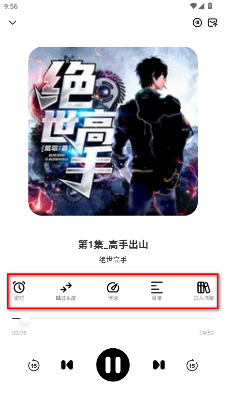 6、本软件支持定时、跳过片尾、倍速、目录、加入书架等功能,大家可以按需点击进入使用哈。