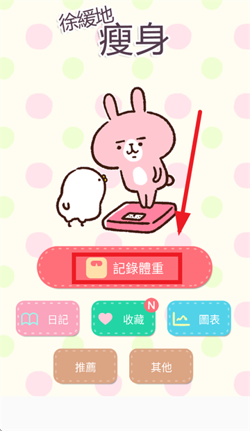 4、手动输入体重后,可爱贴图随体重变化而动,让减肥过程充满趣味与期待。
