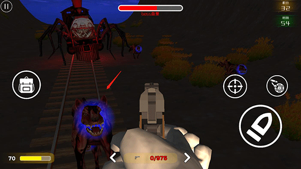 5、使用武器对准怪物火车,展开射击,击中后Boss血量就会减少。
