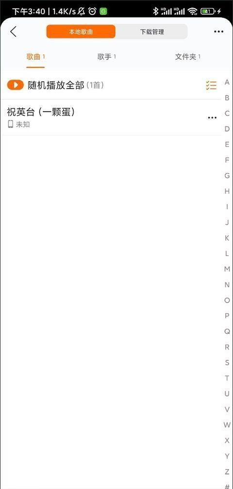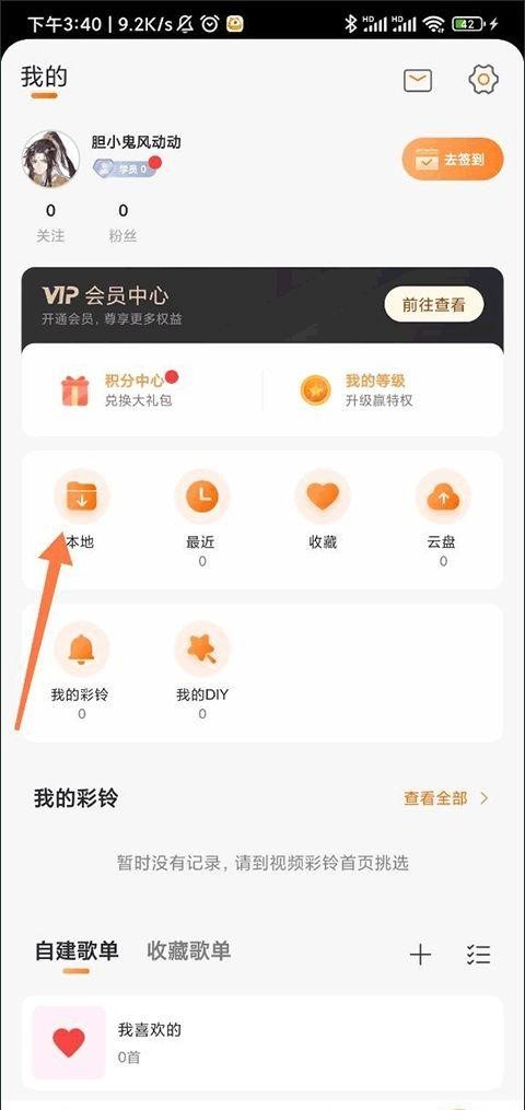 3、在您的个人页面上选择“本地”选项,您将被带到本地音乐管理界面,首次使用时可能不会显示手机中的音乐文件。