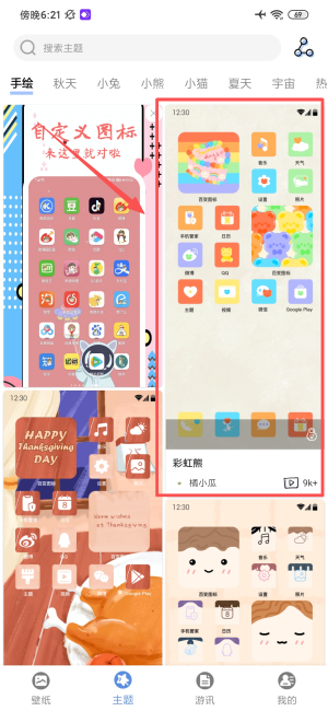 2、在主题界面上选择“彩虹熊”等主题,进入详情页面。