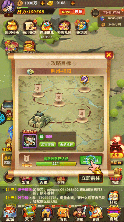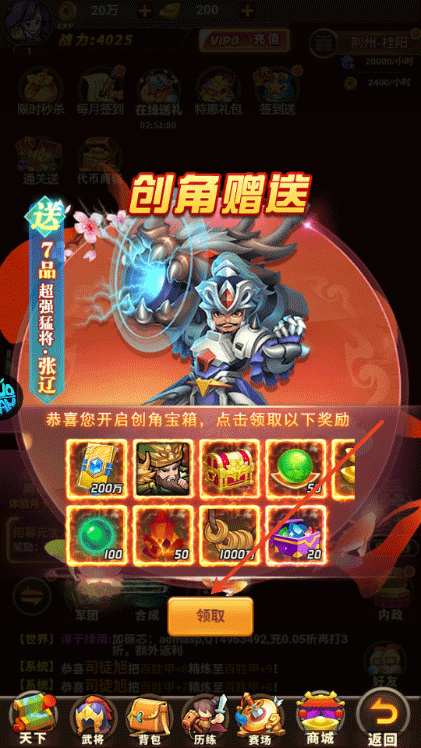 2、创角就送7品张辽、宝箱、金锭等海量资源;