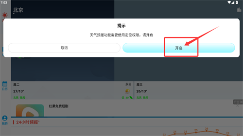 1、启动真好天气应用程序后,请允许访问位置以获取当地天气预报服务。