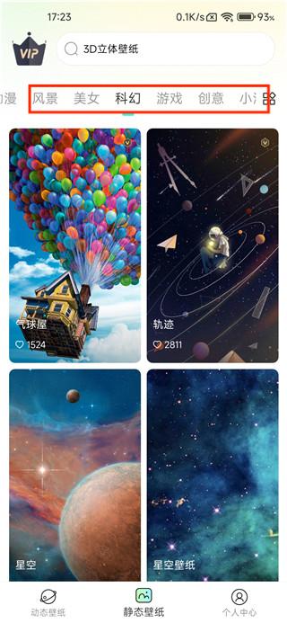 2、静态壁纸的类型也非常多样化,包括风景、美女、科幻、游戏等。