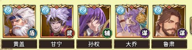 推荐武将:黄盖、甘宁、孙权、大乔、鲁肃