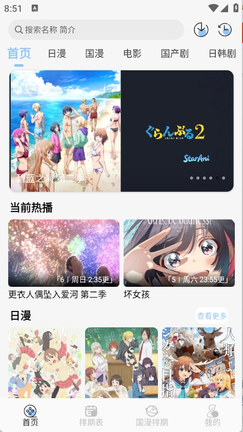 2、首页为用户提供了很多的动漫类型,日漫、韩漫以及国漫等都有。