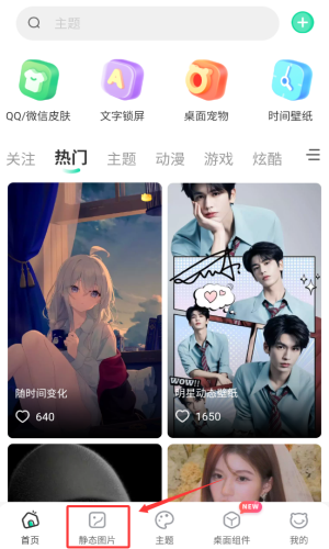 2、导航到主界面底部,单击红色箭头指向的静态图像按钮。