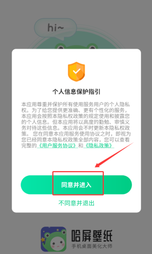 1、阅读隐私保护指南,点击红色标记的同意和输入按钮。