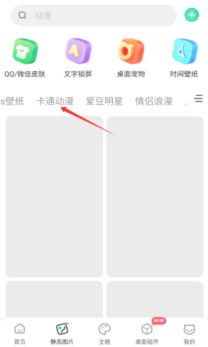 3、在标签类别栏中,单击红色箭头指向的卡通动漫类别。