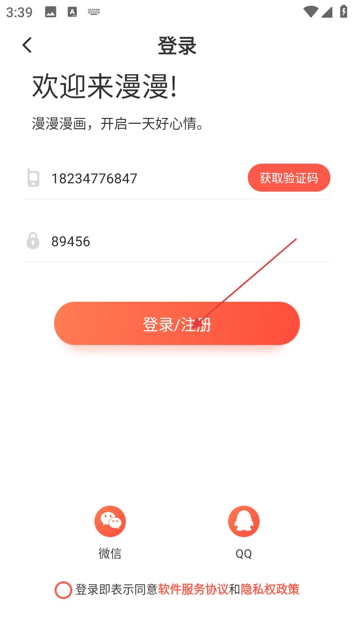 3、进入登录页面后,您可以选择输入您的电话号码和验证码,或使用微信或QQ登录。