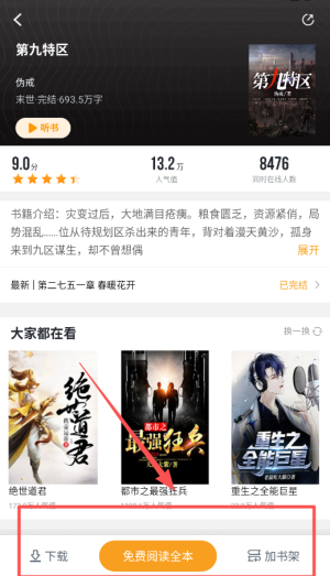 2、找到感兴趣的小说后,点击书籍封面进入详情页面。在这里,您可以阅读介绍并直接点击开始阅读按钮立即享受阅读。