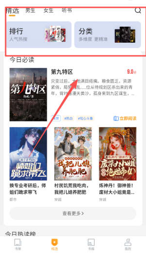 1、打开应用程序后,您可以直接浏览主页上推荐的热门小说,或使用顶部的搜索框输入书名或作者姓名,以准确找到您想阅读的书。