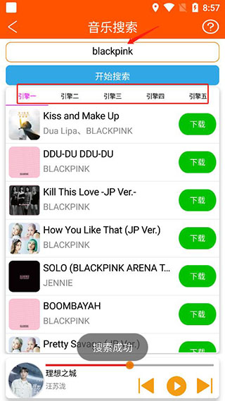 2、您还可以在搜索框中搜索歌手或歌曲标题,并提供来自多个引擎的搜索结果。