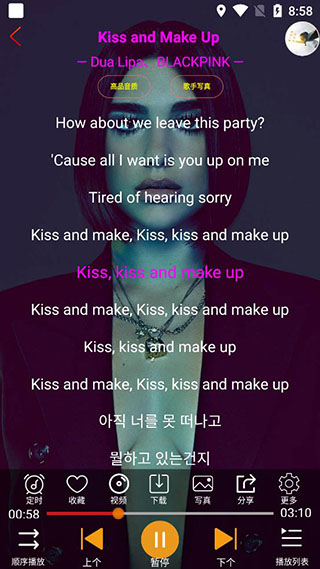 4、歌词同步显示:播放音乐时,歌词可以实时显示,方便用户同时收听和观看。