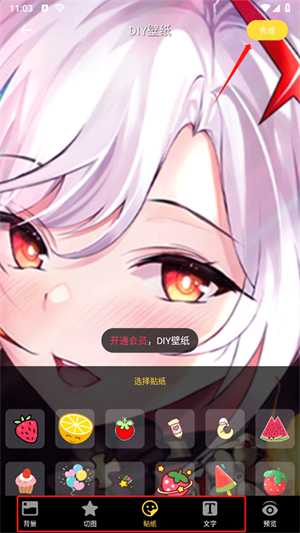3、使用底部工具栏编辑壁纸后,单击右上角的合成按钮。
