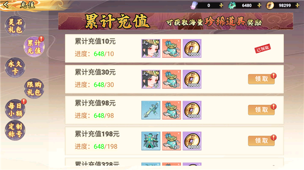 6、同时我们在充值活动中可以领取充值礼包,开局送了648充值。