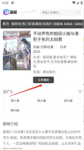 4、点开想看的动漫进入到详情页点击播放。