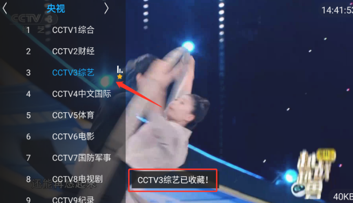 6、收藏夹频道:在频道播放页面上,点击确认按钮以显示操作菜单。选择 “收藏夹” 将当前频道添加到 “收藏夹” 文件夹。