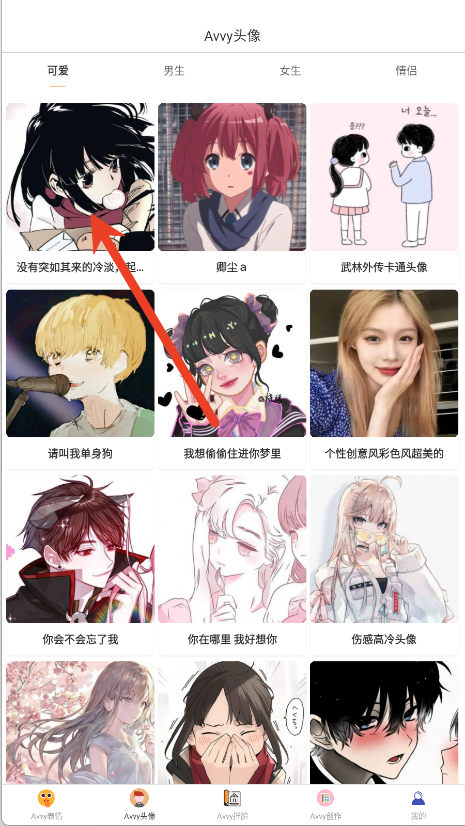 2、头像分类细致全面,可通过可爱、女生、男生或情侣等标签查找,快速定位心仪头像,节省时间。