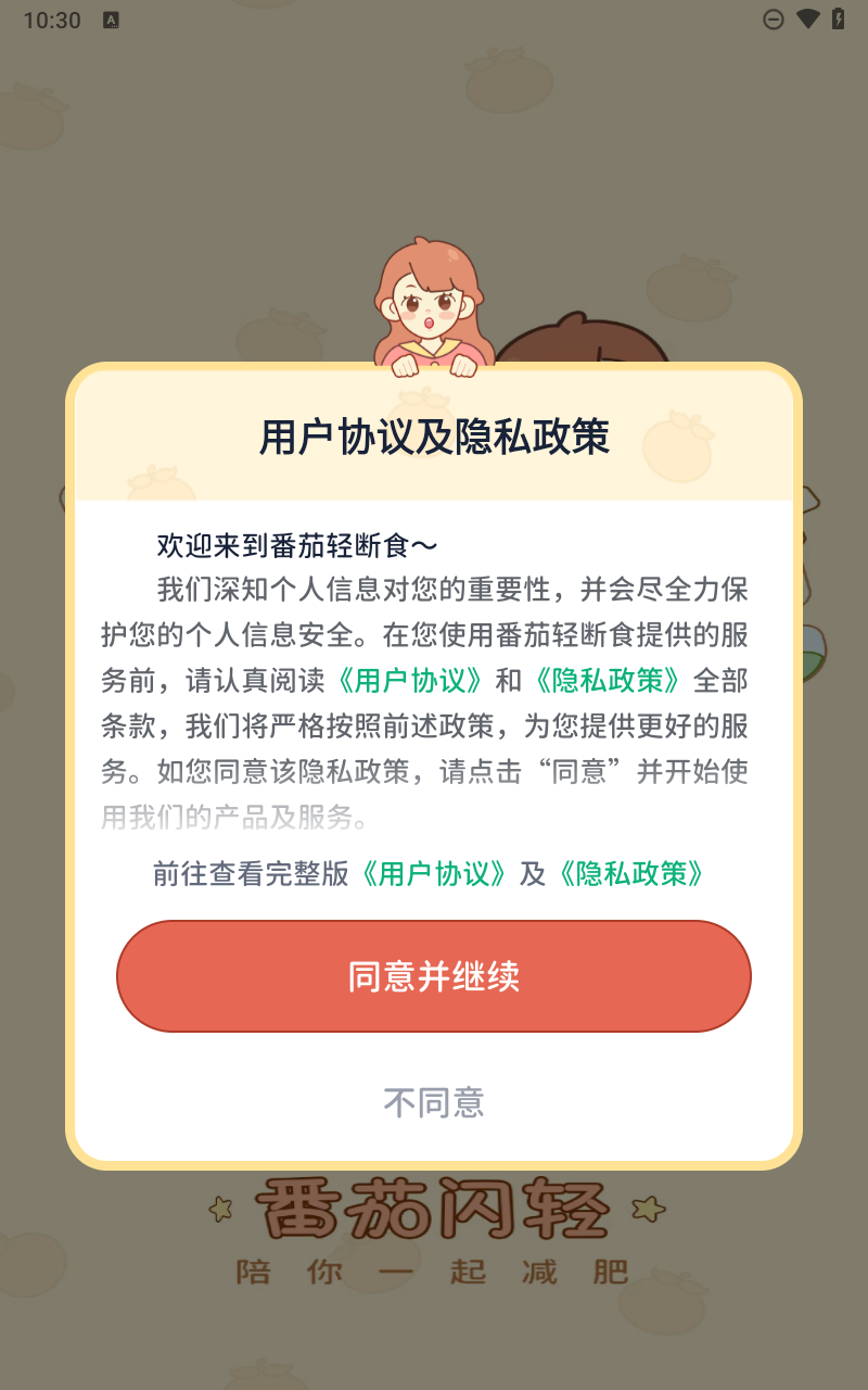 2、正式使用前,用户需要同意用户协议和隐私政策。