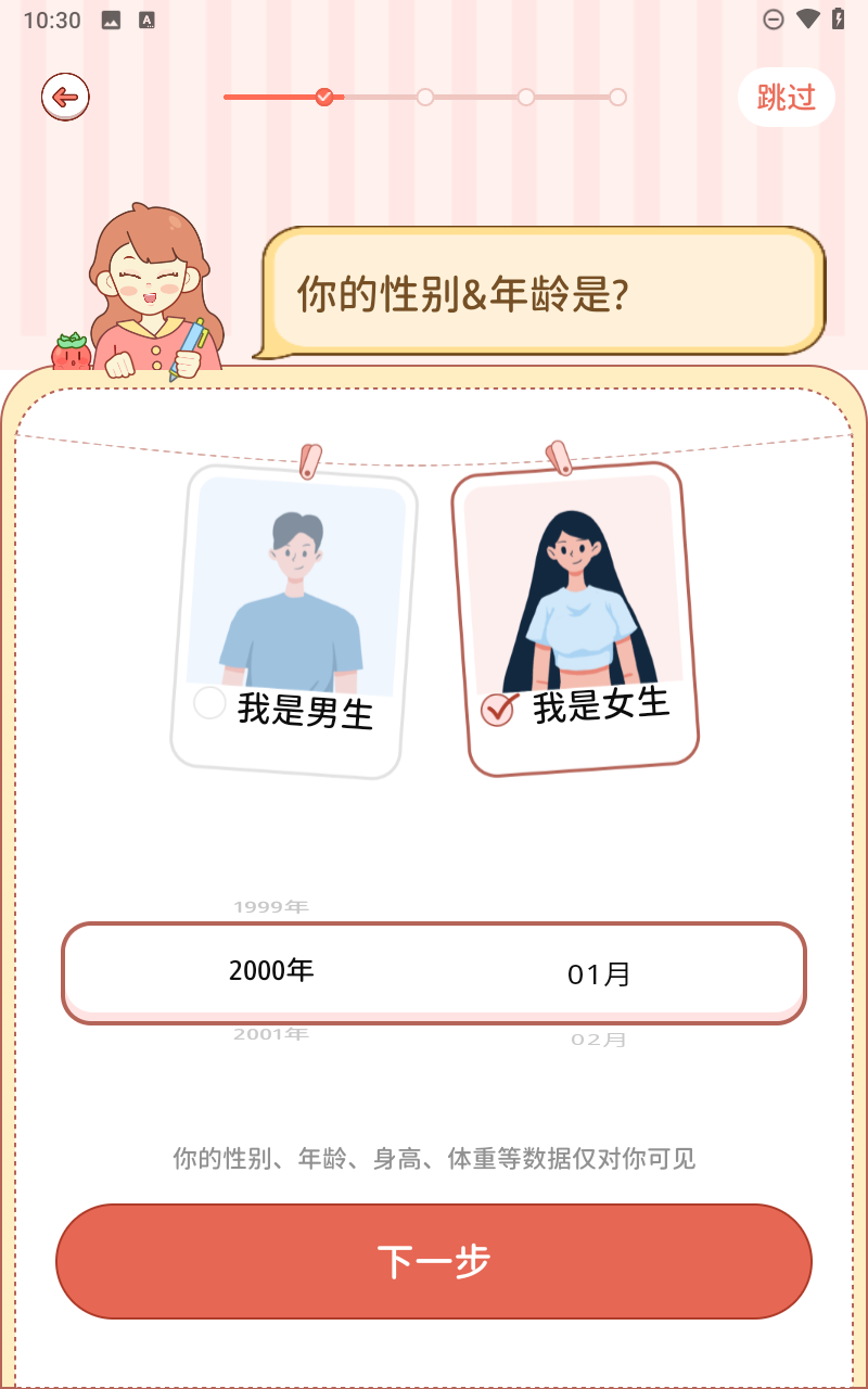 5、用户还可以通过选择性别跳过上述设置。