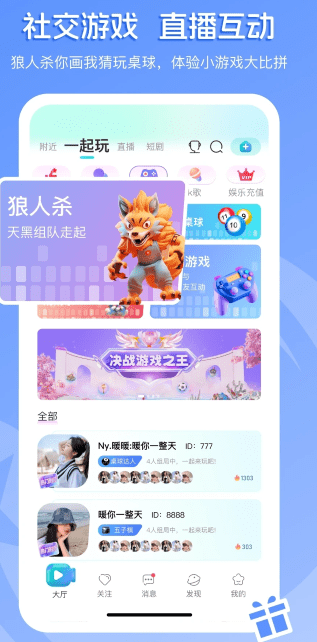 2、该软件支持多人在线语音,允许他们在连接的房间里通过语音互动,一起聊天和交朋友。