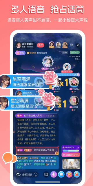 流星直播改名后叫星月娱乐APP,大家直接在这里下载软件也是一样的直播平台。用户可以全天候观看和享受他们最喜欢的直播视频。该平台以全新的方式与直播互动。它使得参与直播游戏活动和有趣的语音链接麦克风PK挑战变得容易。未来,每个人都可以非常轻松地在线观看他们最喜欢的直播明星视频。