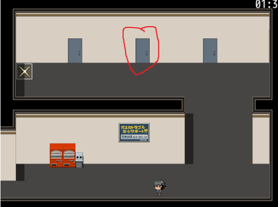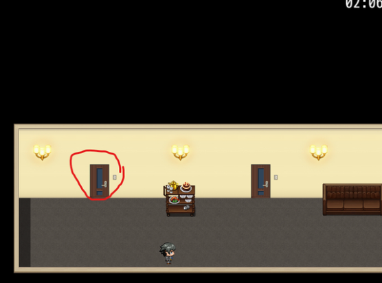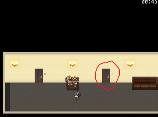 在盆栽处取得钥匙,进入图中所示的房间即可触发剧情(也只有这一扇门能开……),最后再走一段迷宫(说实话这个结局让我生理不适,有点犯恶心……)。
