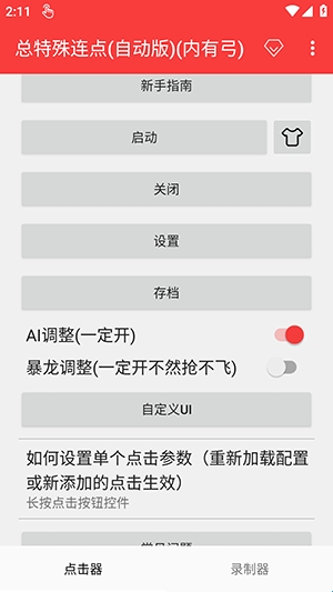 总特殊连点软件内置的参数调节系统堪称行业标杆,提供点击周期、触摸时长、执行次数等十余项精细化设置选项。用户既可以选择标准模式进行基础操作,也能开启AI智能模式让系统自动优化点击节奏,更有专为竞技游戏设计的"暴龙模式"实现毫秒级响应。每种功能均配备图文并茂的新手指南,从参数逻辑到场景应用都有详细说明,即便是初次接触自动点击工具的用户也能在5分钟内掌握核心操作,轻松修改出符合个人需求的定制方案。