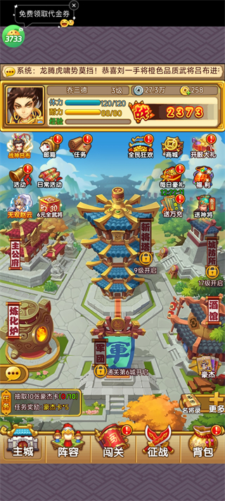 5、优先完成日常任务并领取开服福利,搭配低折扣充值机制,可快速解锁全武将阵容,有效降低养成成本,提升整体游戏体验。