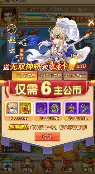《全民主公H5》游戏以丰富的三国名将系统为核心。玩家可以通过高福利机制快速组建军事将领阵容,自由匹配阵型和技能,体验进攻和防御游戏中战略制定的乐趣。同时,多种开放服务福利和超低折扣大大降低了成长门槛,使玩家能够更加专注于战略匹配和战斗体验。以三国时代为背景,采用精致的3D立体美术,所有军事将领都得到了高度修复。通过专业的高质量旁白,向玩家呈现了一个非常逼真的三国世界。