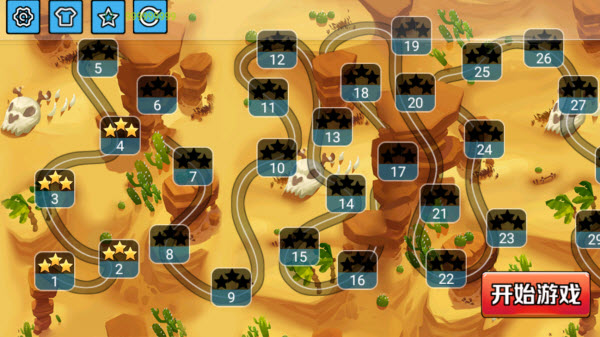 1、打开游戏,自由选择先要挑战的关卡,需要从第一关开始逐渐解锁。