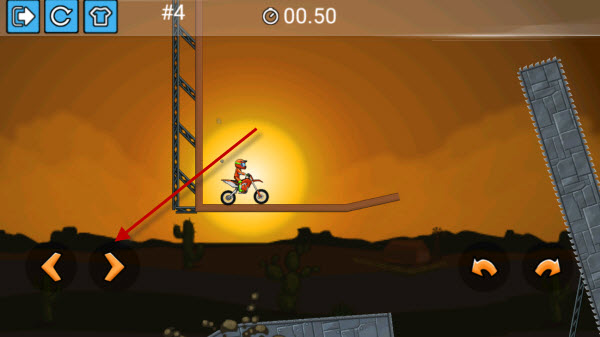 2、在关卡内通过屏幕左下方的按钮控制摩托移动。