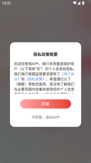 1、点击已经安装好的app进入,点击同意按钮。