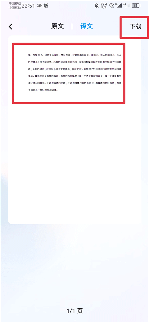 5、最后,系统会自动为您翻译。点击下载按钮下载翻译。