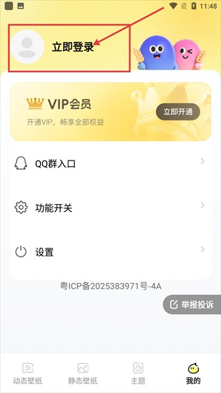 3、在个人中心页面,点击“立即登录”进入登录界面。