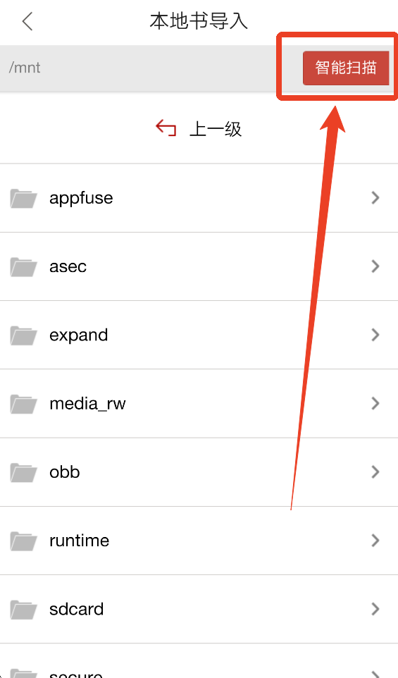 3、大家可以自己找文件,或者点击右上角的【智能扫描】识别手机内的TXT格式文件。