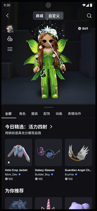 - 在商城中发现数千个由用户创建的虚拟形象道具。