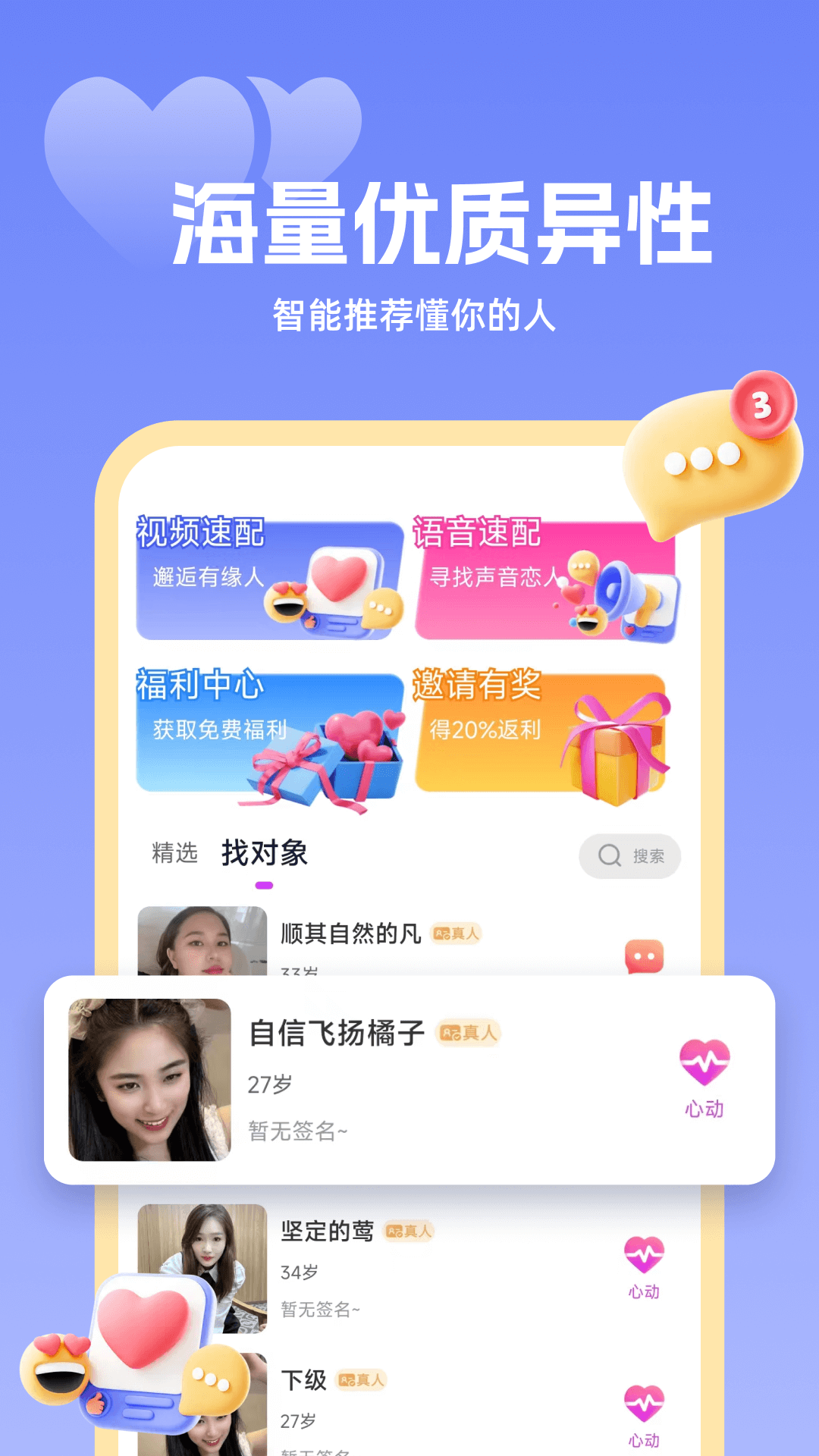 2、用户能在线尽情分享生活中精彩动态,吸引同好,增加脱单几率。