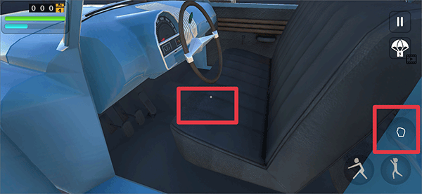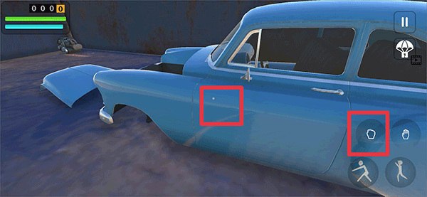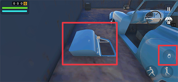 1、在游戏中玩家需要先将汽车上的所有零件装备在车上,点击手掌按钮拾取。