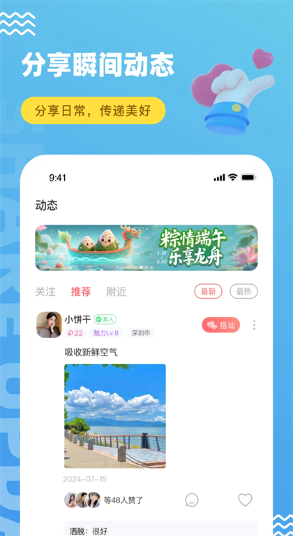 4、平台拥有海量周边异性资源,按需匹配,让你快速找到志趣相投、心仪的社交对象。