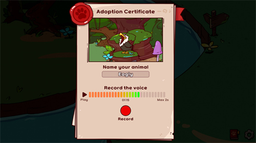 3、每个领养来的动物你都可以为它命名并录下你的声音作为它的叫声。