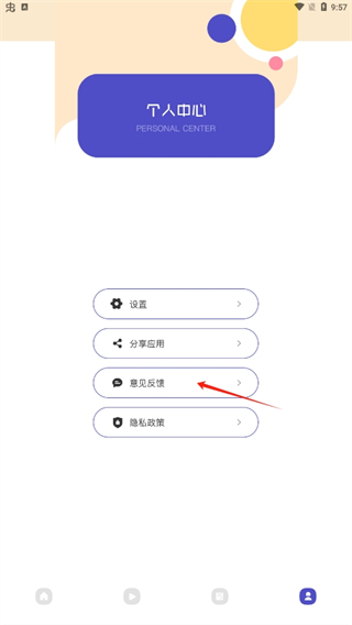 5、在个人中心页面,有反馈和分享应用程序等功能。如果你有好的建议,你可以把它们还给官方,并留下你的联系方式。
